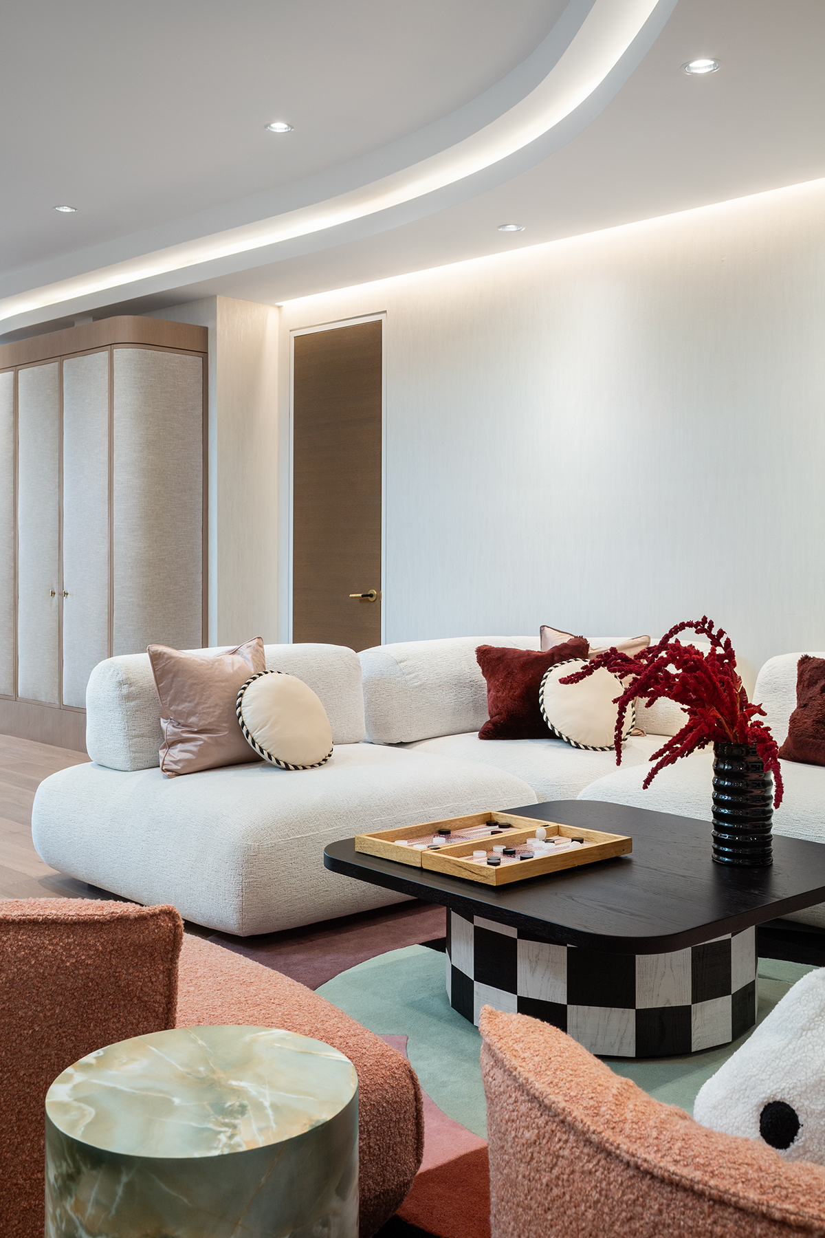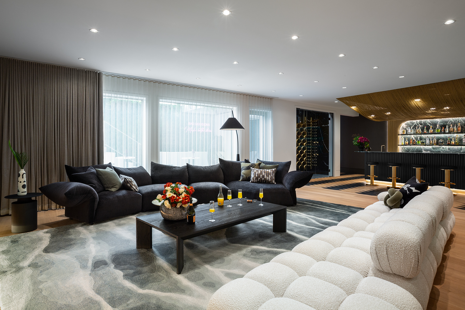 From furnishing a 10,000 sq. ft. home to orchestrating a vibrant partial renovation, this project evolved into an entertainment haven—youthful, bright, and perfectly balanced between feminine and masculine energy.